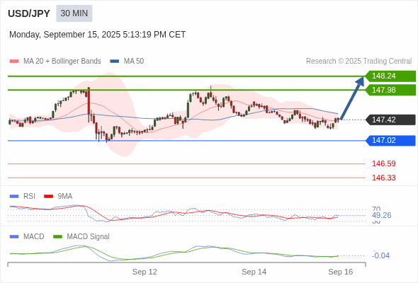 美元/日元 当日内 : 有上涨的可能,目标价位定在 148.24 。