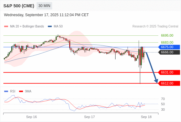 在 6675.00 之下,看跌,目标价位为 6631.00 ,然后为 6612.00 。