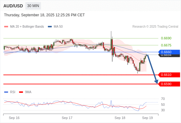 在 0.6660 之下,看跌,目标价位为 0.6610 ,然后为 0.6590 。