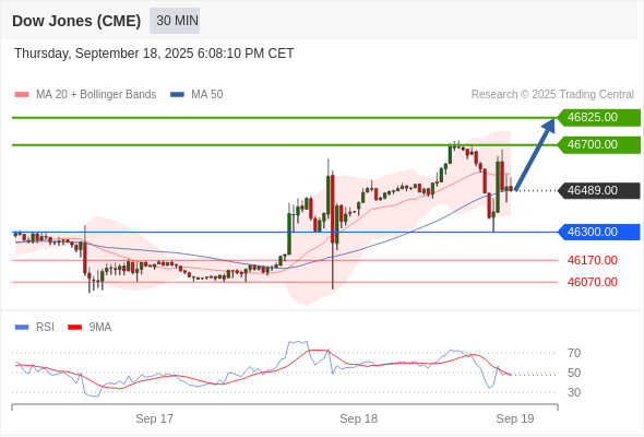 在 46300.00 之上,看涨,目标价位为 46700.00 ,然后为 46825.00 。