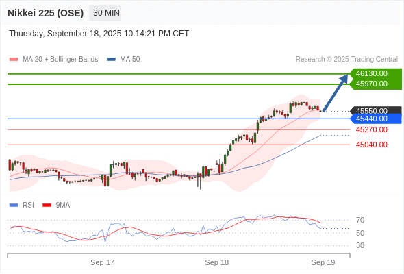 日经225股指期货 (OSE) 当日内: 超短线(当日内)支撑位在45440.00附近。