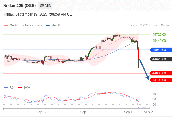 在 45040.00 之下,看跌,目标价位为 44000.00 ,然后为 43700.00 。