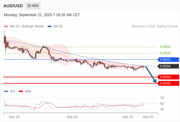 在 0.6615 之下,看跌,目标价位为 0.6560 ,然后为 0.6540 。