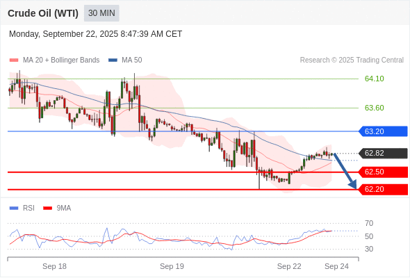 在 63.20 之下,看跌,目标价位为 62.50 ,然后为 62.20 。
