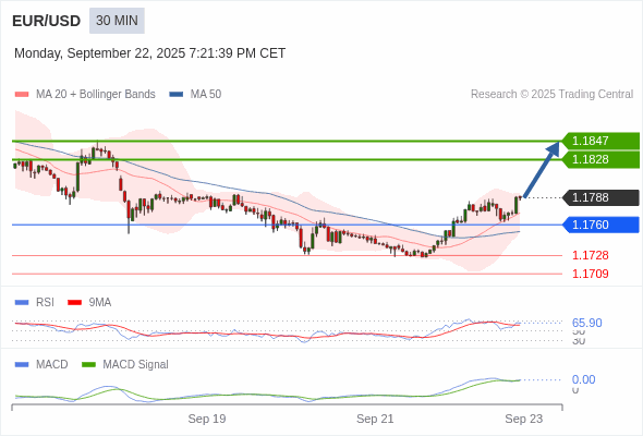 欧元/美元 当日内 : 看涨,当 1.1760 为支撑位。
