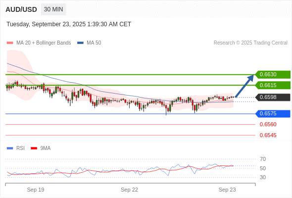 在 0.6575 之上,看涨,目标价位为 0.6615 ,然后为 0.6630 。