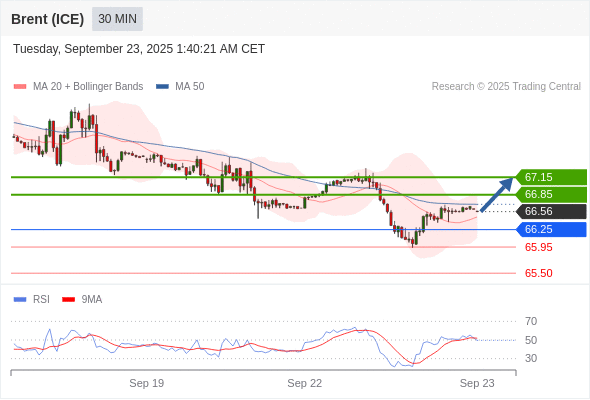 在 66.25 之上,看涨,目标价位为 66.85 ,然后为 67.15 。