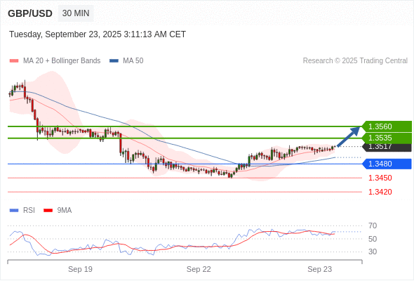 在 1.3480 之上,看涨,目标价位为 1.3535 ,然后为 1.3560 。