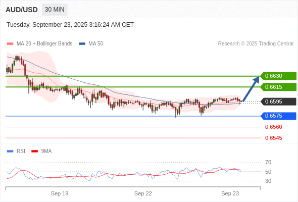 在 0.6575 之上,看涨,目标价位为 0.6615 ,然后为 0.6630 。