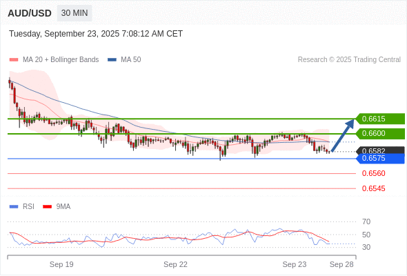 在 0.6575 之上,看涨,目标价位为 0.6600 ,然后为 0.6615 。