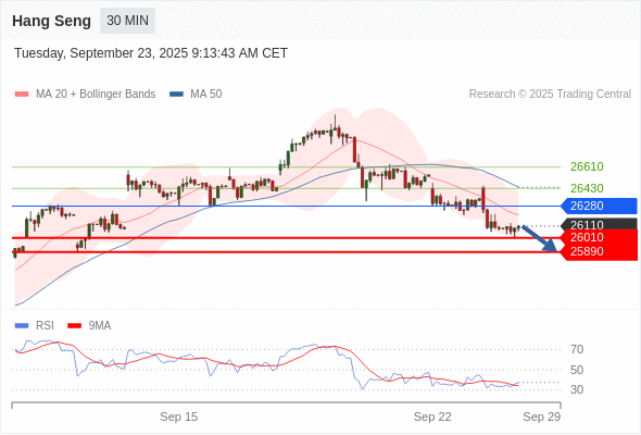 恒生指数 当日内: 短期关键阻力位在26280。