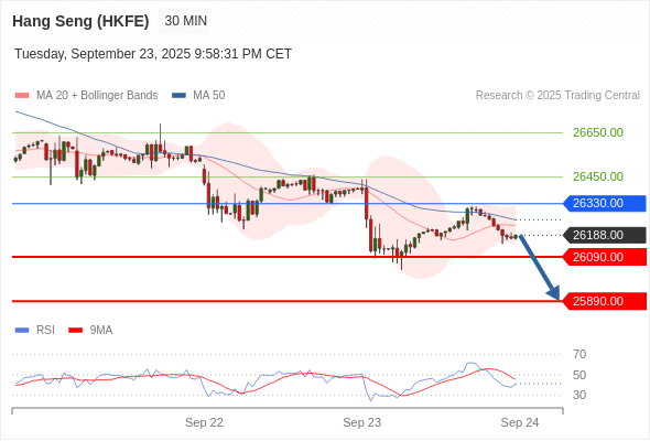 在 26330.00 之下,看跌,目标价位为 26090.00 ,然后为 25890.00 。