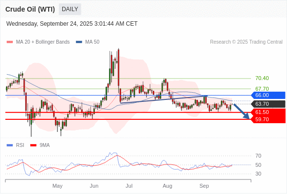 交易策略: 在 66.00 之下,看跌,目标价位为 61.50 ,然后为 59.70 。