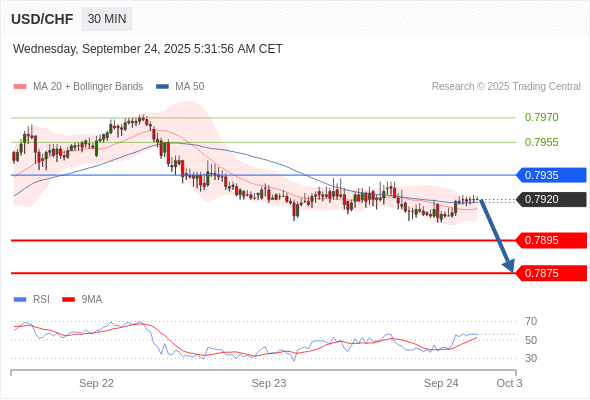 美元/瑞郎 当日内: 短期关键阻力位在0.7935。