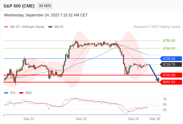 美国标普500指数期货 (Z5) 当日内: 短期关键阻力位在6728.00。