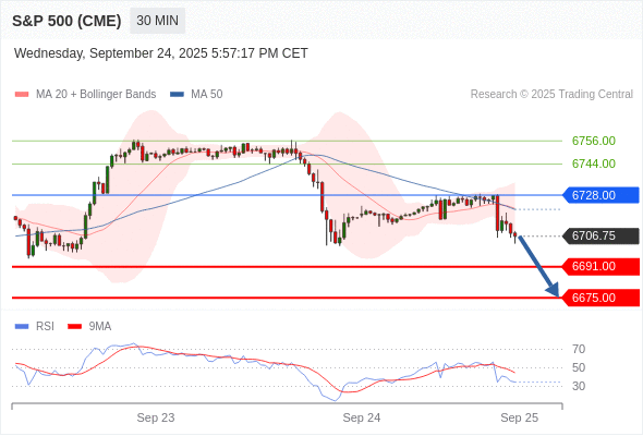 在 6728.00 之下,看跌,目标价位为 6691.00 ,然后为 6675.00 。
