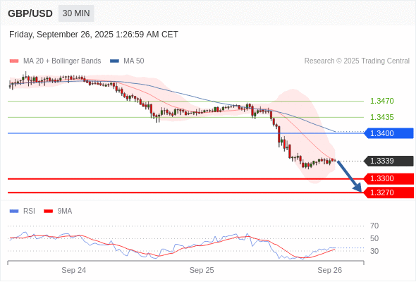 交易策略: 在 1.3400 之下,看跌,目标价位为 1.3300 ,然后为 1.3270 。