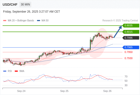 在 0.7965 之上,看涨,目标价位为 0.8015 ,然后为 0.8035 。