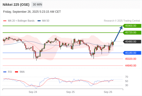 在 45180.00 之上,看涨,目标价位为 45720.00 ,然后为 45900.00 。