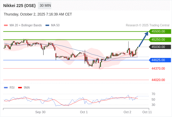 在 44625.00 之上,看涨,目标价位为 45250.00 ,然后为 45500.00 。