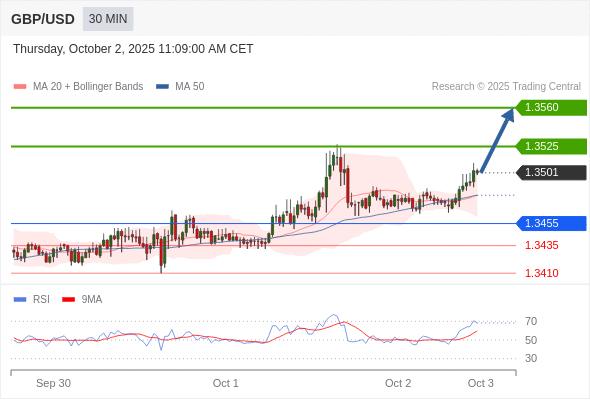 在 1.3455 之上,看涨,目标价位为 1.3525 ,然后为 1.3560 。