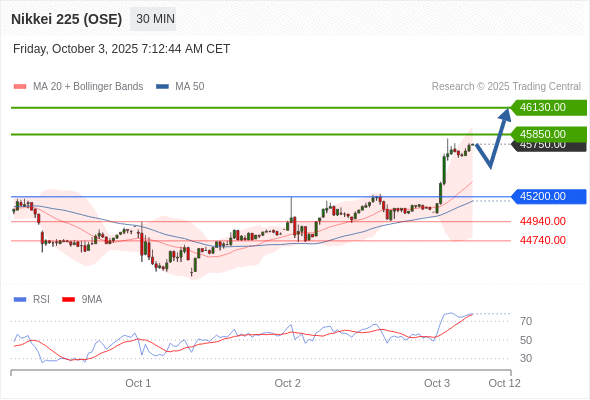 在 45200.00 之上,看涨,目标价位为 45850.00 ,然后为 46130.00 。