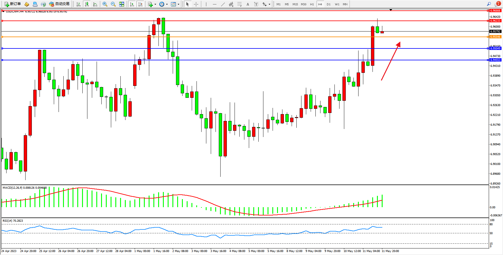 交易策略:6.95546上方看涨,目标6.96233 6.96666