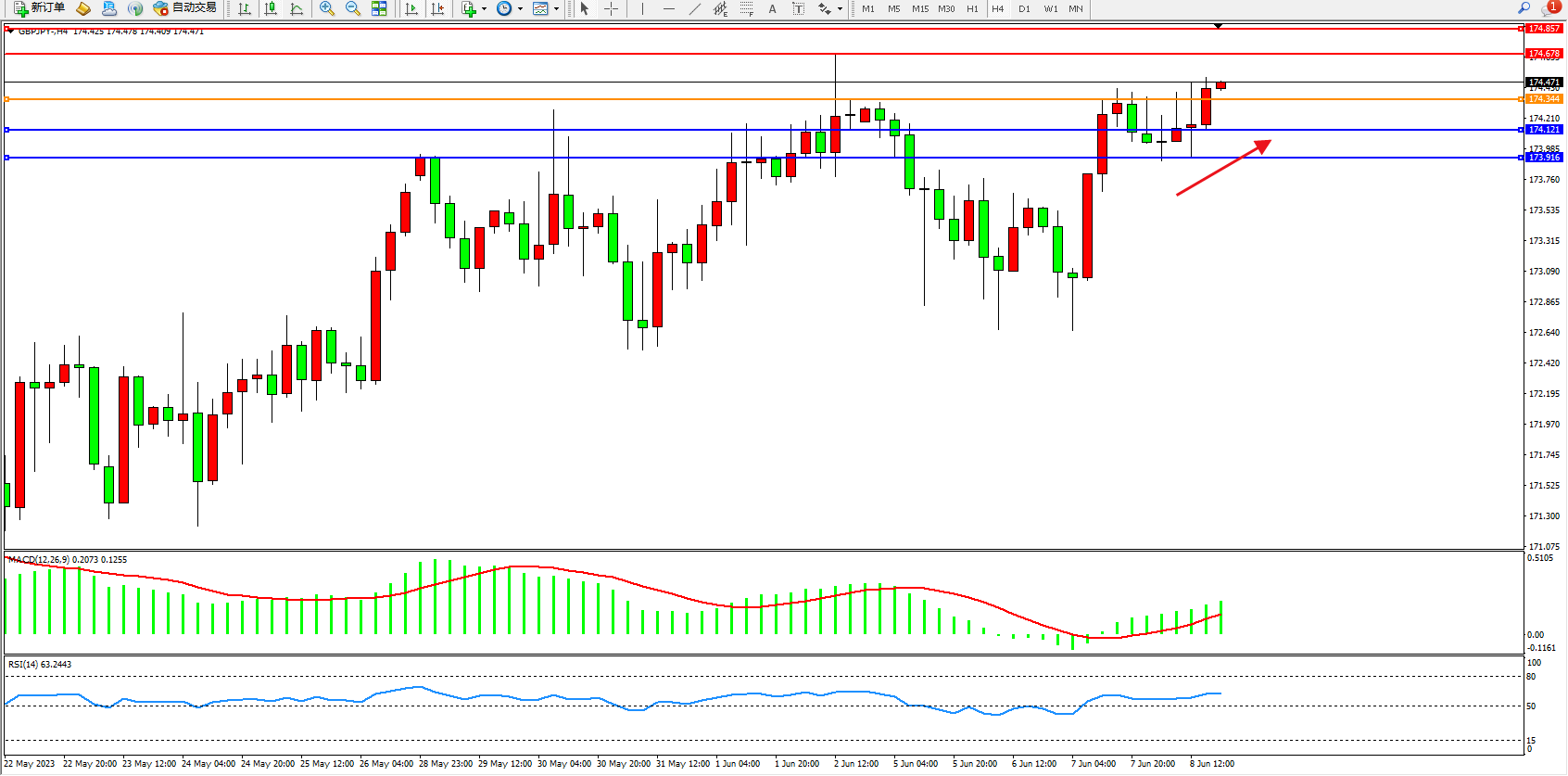 英镑兑日圆维持174.471附近震荡,英国央行将于6月22日召开下一次会议,交易商押注加息25个基点的可能性为88%。