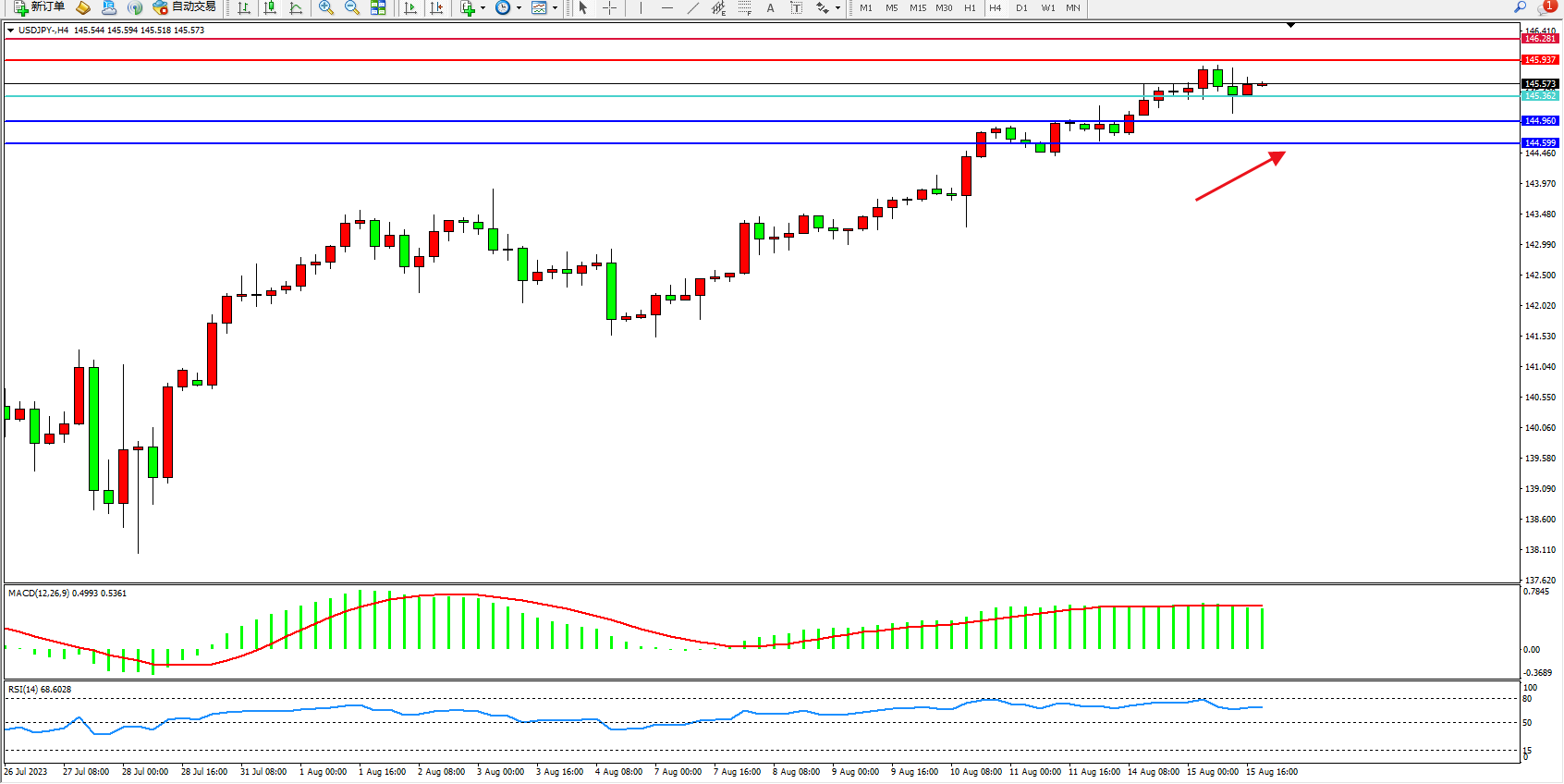 交易策略:145.362上方看涨,目标145.937 146.281