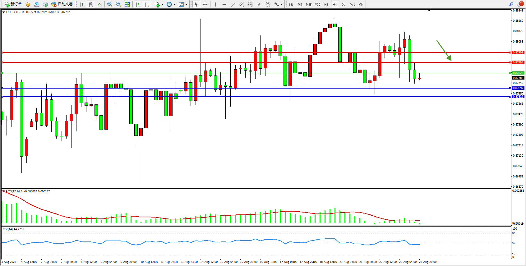 美元兑瑞郎维持0.87820附近震荡,投资者、交易员、市场经济学家和分析师都将全神贯注地倾听鲍威尔主席在本周五央行夏季研讨会上的演讲。