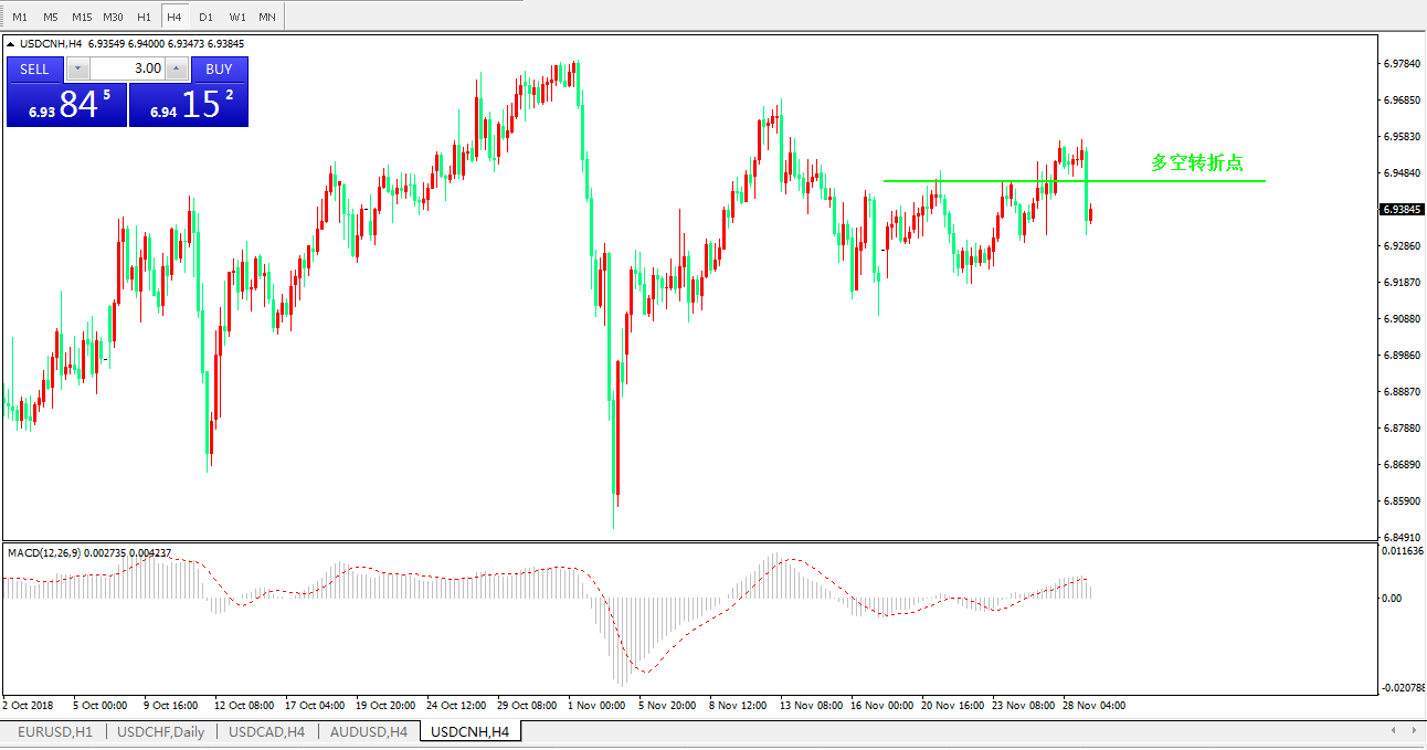 美元兑人民币USDCNH4小时图: