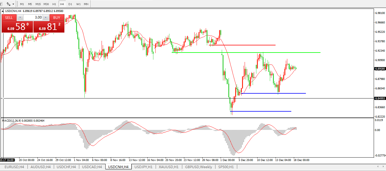 交易策略6.9200之下,看跌,目标价位为6.8753,然后为 6.8545