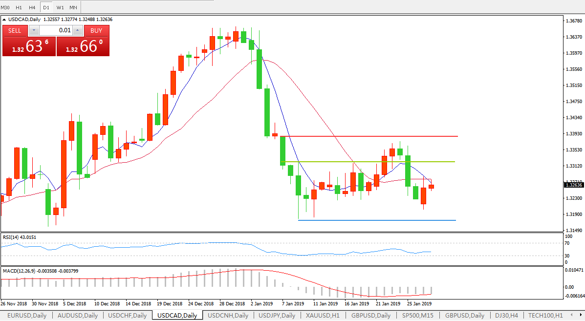 基本面分析:油价周一下跌约3%,创一个月以来最大单日跌幅,WTI原油一度跌逾4%。达沃斯论坛上,各方均预计未来两年全球增长将放缓,这已成为原油市场的主要担忧,加之上周美国原油库存及石油钻井数据录得增长,给油价带来抛售压力。油价的下跌,推升美加上行。
