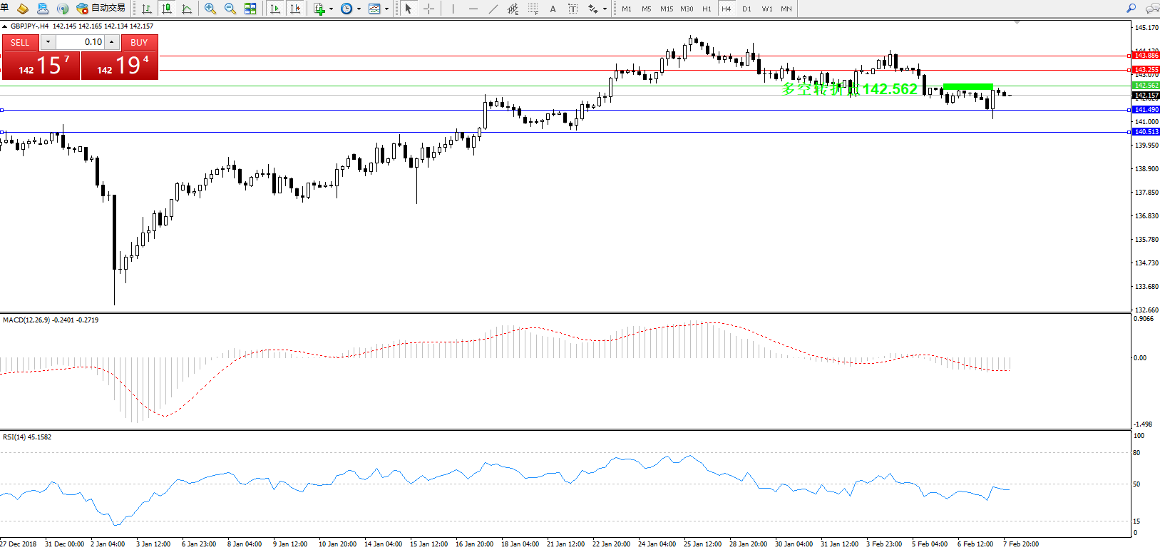 交易策略:142.562下方看跌,目标141.490、140.513