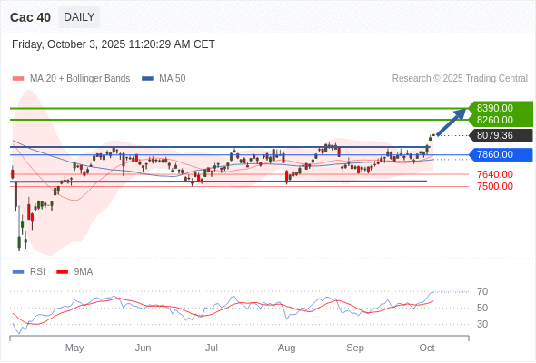 Cac 40 短线: 看涨。