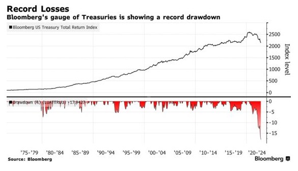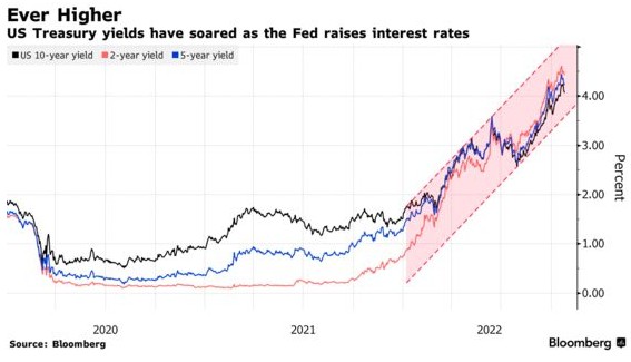 Stealey发表上述观点之前,美国国债指数今年下跌了近15%,这将是自上世纪70年代以来最严重的年度亏损,因为美联储提高了借贷成本以对抗极高的通货膨胀。随着投资者抛售对通胀敏感的债券,10年期国债收益率飙升至4.34%的高点,周三在4.04%左右交易。