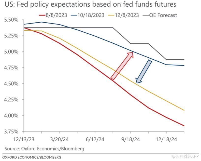 基于联邦基金期货数据,交易员在过去几个月对降息的预测也一直在变化。