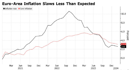欧元区2月份通货膨胀的缓和程度低于预期,这为不想急于降息的欧洲央行官员提供了支持。